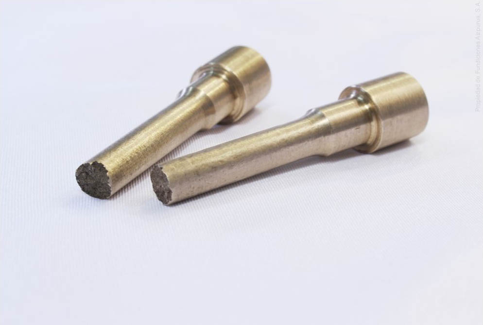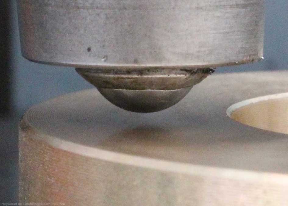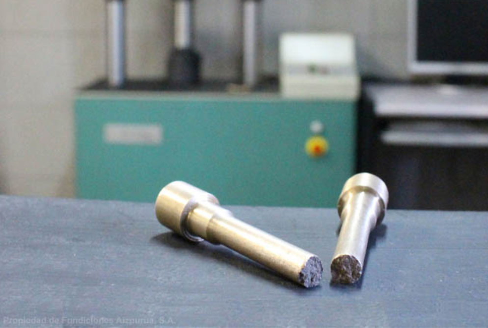 Este equipo lo destinamos a la determinación de las características mecánicas de las piezas que fundimos, mediante la realización de ensayos de tracción conforme a norma europea vigente.