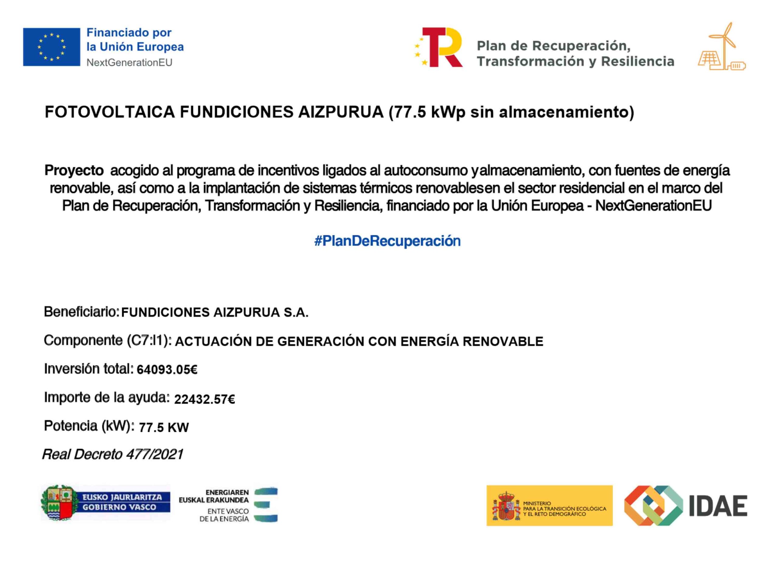 Fundiciones Aizpurua, S.A. • Polígono Aranguren, 7 • 20180 Oiartzun • Spain • Tel.: +34 943 490 288