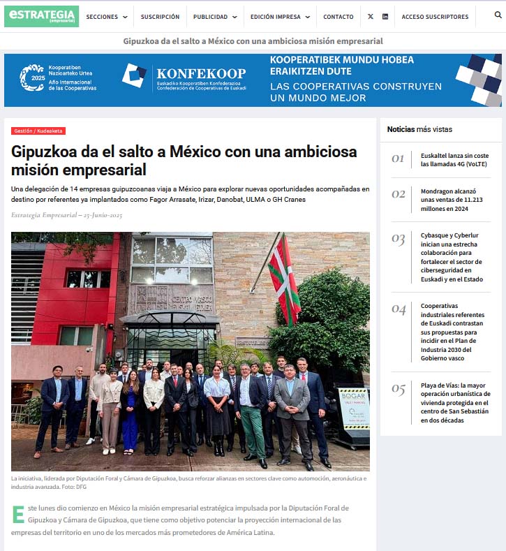 Esta semana hemos estado en México, con la iniciativa impulsada por la Diputación Foral de Gipuzkoa y Cámara de Gipuzkoa, en su compromiso por la internacionalización de las empresas guipuzcoanas.
